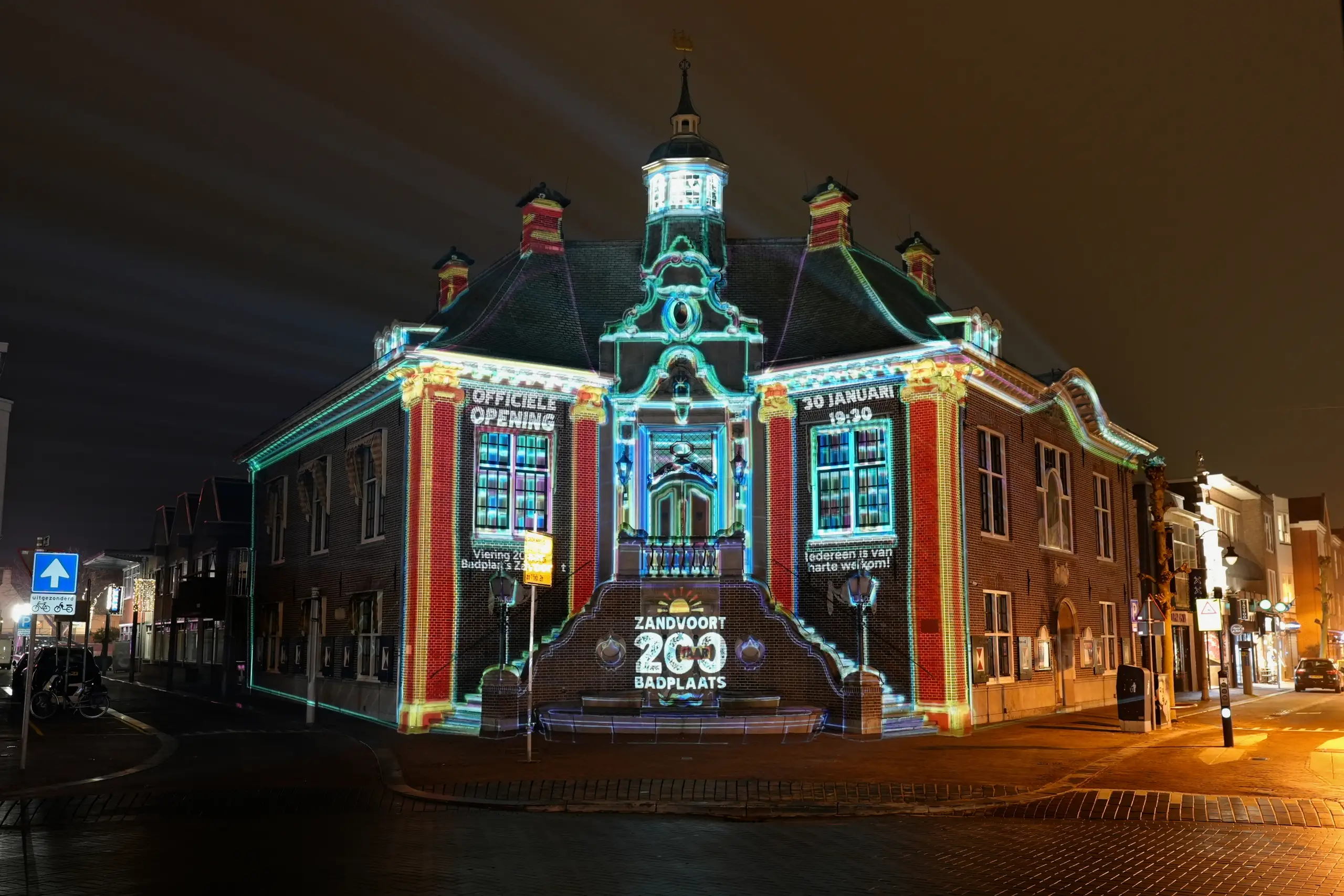 Op het Raadhuisplein is een lichtprojectie te zien die de ontwikkeling van Zandvoort van vissersdorp tot badplaats verbeeldt. Aan de hand van historische mijlpalen laat de projectie zien hoe het dorp zich door de jaren heen heeft veranderd. De lichtshow is speciaal ontwikkeld voor het jubileumjaar en is een vast onderdeel van de openbare ruimte, toegankelijk voor alle leeftijden.
