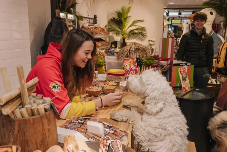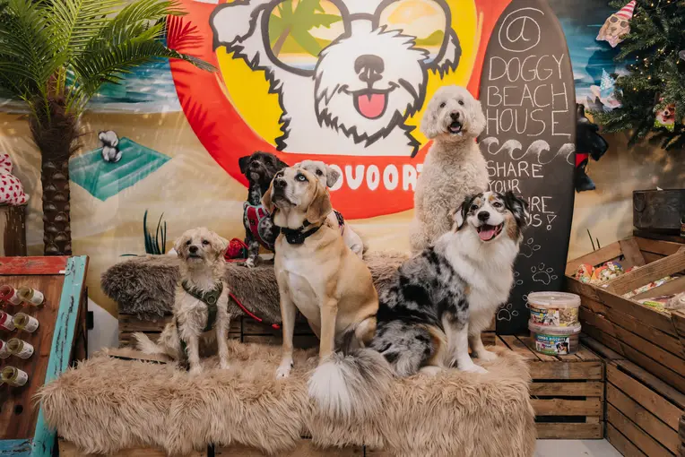 Doggy Beach House in Zandvoort is geen gewone hondenwinkel, maar een tropisch uitje voor baasjes en viervoeters. GMidden in het centrum van Zandvoort vind je alles om je hond eens goed te verwennen – van bijzondere snacks en originele speeltjes tot een stijlvolle outfit. Van croissantjes uit de snackmuur tot hondvriendelijk bier aan de Doggy Bar – alles is met liefde en humor bedacht. Ook leuk als afsluiting van een wandeling door de duinen. Een originele stop tijdens je stranddag én een fijne herinnering voor je hond.