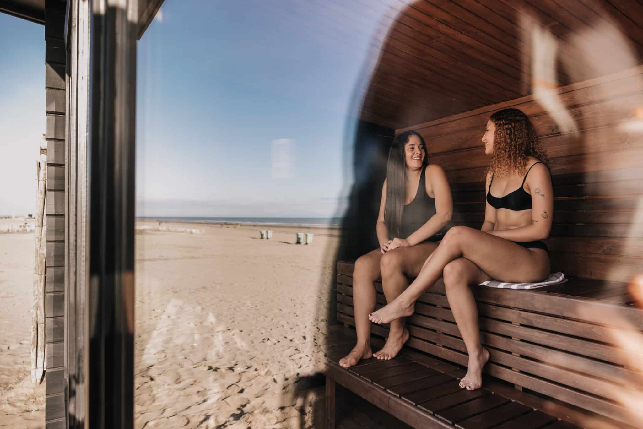 Na een koude strandwandeling doken we de sauna in. De sauna stond midden op het strand en door de ramen had je een prachtig uitzicht. Even afkoelen in zee of onder de buitendouche en dan weer terug de warmte in. Wat een ervaring.